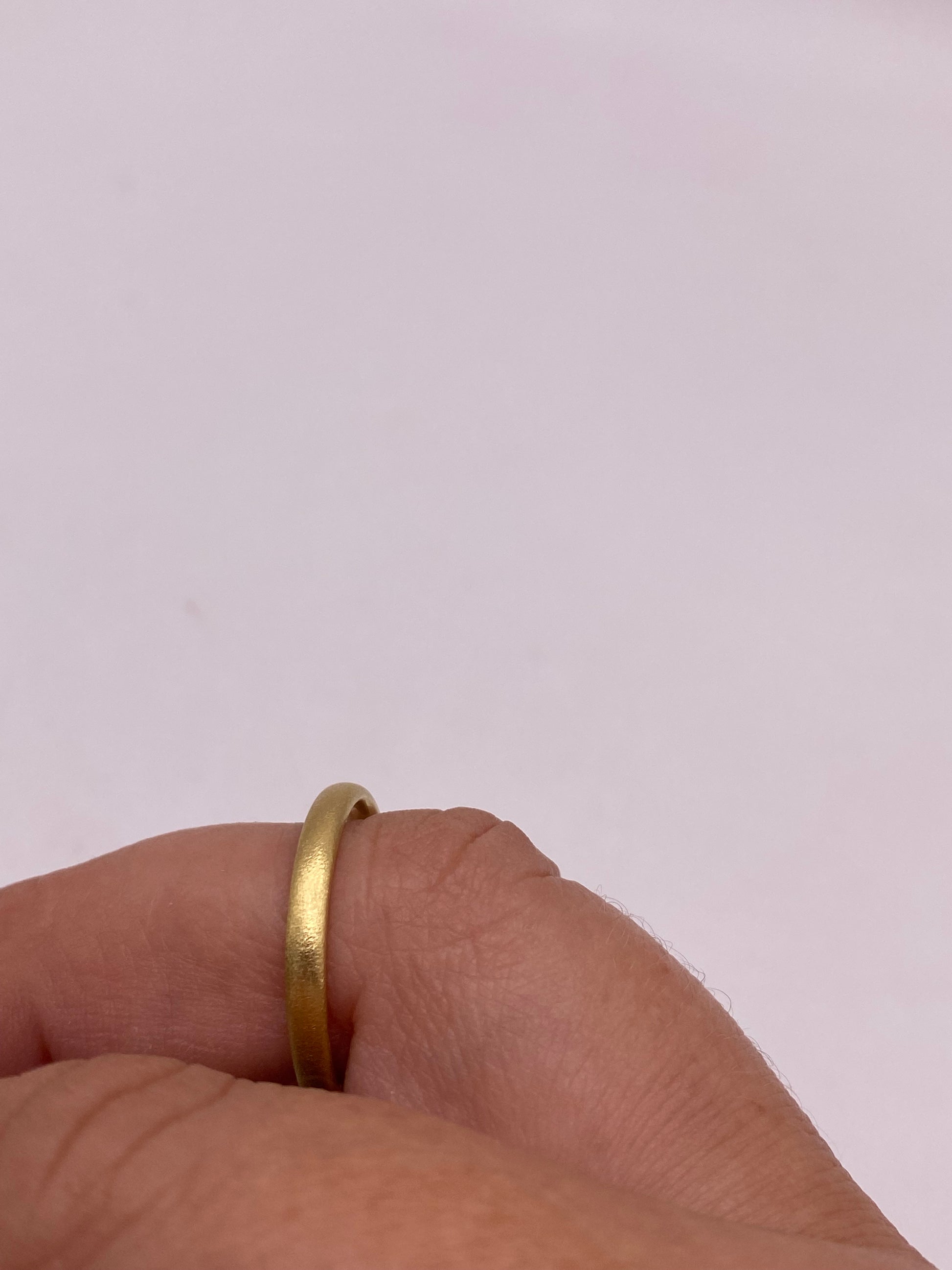Cette alliance unique capte la lumière avec une texture délicatement sablée, sublimée par l'éclat chaud de l'or jaune 18k.