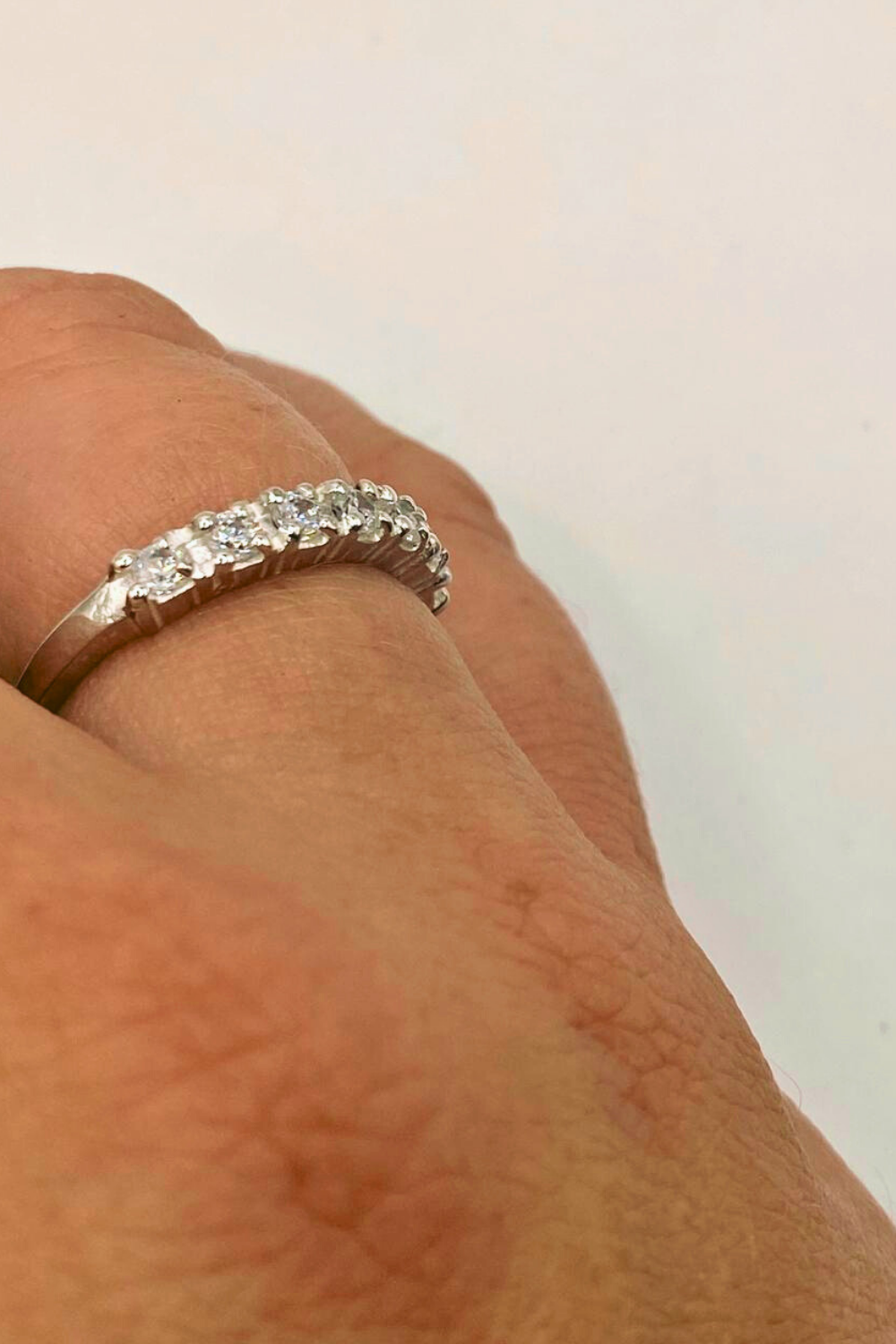 Un symbole intemporel de passion durable, cette demi alliance en diamant célèbre l'amour qui s'épanouit et se renforce au fil des années.